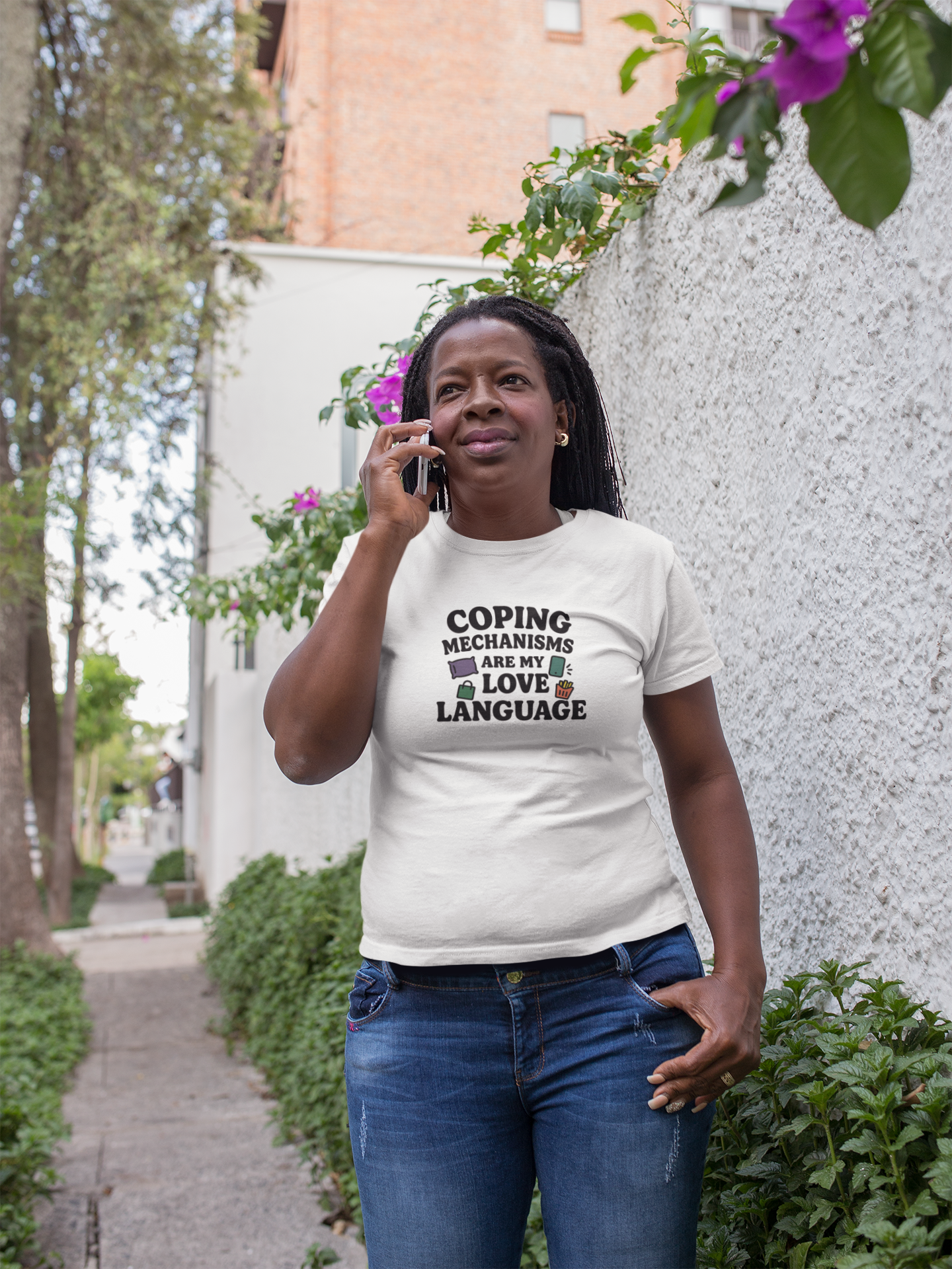 The Coping Mechanisms Are My Love Language T-Shirt blends humor with honesty in a colorful, relatable design. Featuring icons like pillows, shopping bags, phones, and fries, this tee celebrates the quirky comforts we turn to when life gets overwhelming. It’s perfect for anyone who balances self-awareness with laughter, making it a standout gift or everyday conversation starter. Comfortable and stylish, this shirt turns personal struggles into shared smiles, reminding us that coping—no matter the method—is valid and human.