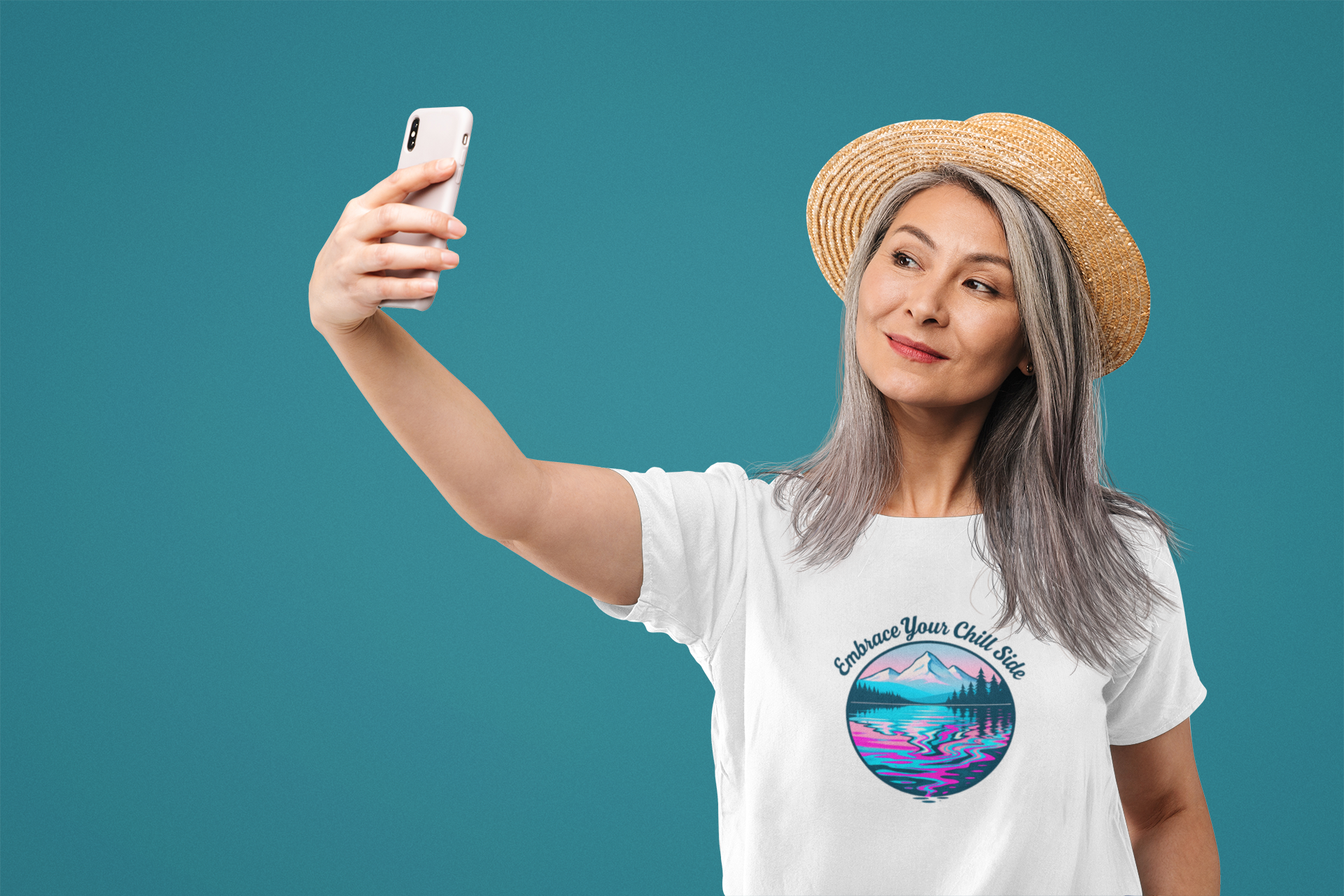 Quiet the noise and center yourself with our Embrace Your Chill Side T-shirt. This uplifting design features a serene beach sunset in a circular frame, its calm beauty mirrored into a melting, colorful distortion below — symbolizing how inner peace can slip away when chaotic thoughts take over. A gentle reminder to embrace your calm, grounded side, this shirt blends mental wellness messaging with bold, artistic style. Printed on a soft white tee in crisp vector art for a vibrant, lasting look.